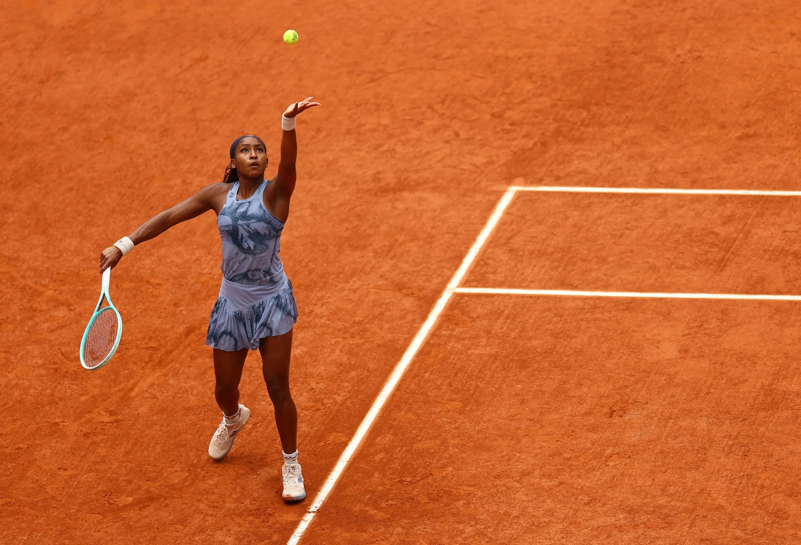 The American player, 21, became emotional at times during a tough first set, seemingly struggling with her serve and clearly feeling the weight of the moment. Following her win in the tiebreaker, Gauff regrouped mentally and dominated the second set 6-2 to clinch the match.